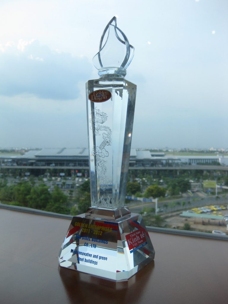 5 March 2012: Pebsteel Buildings Co., Ltd. has been awarded the prestigious “Golden Dragon Award 2011 (Most Innovative and Green Steel Buildings) held at Hanoi Opera House on Saturday, 3 March 2012. The event is co-organized annually by the Vietnam Economic Times and the Ministry of Planning and Investment to honor foreign direct investment enterprises that have made significant contribution to Vietnam’s economy.